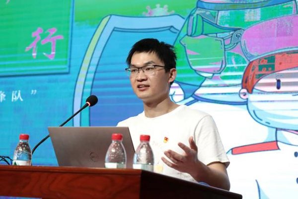 支援街道学生志愿者代表王光明作分享报告