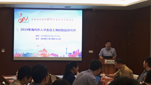 8月30日,作为庆祝中国科学院上海硅酸盐研究所独立建所60周年暨中央研究院工程研究所成立91周年系列学术活动之一,中国科学院上海硅酸盐研究所举办了2019年首届海内外人才走进上海硅酸盐所活动,邀请了来自德国于力希研究中心、美国加州大学洛杉矶分校、美国西北大学、中国科学院上海技术物理研究所和上海交通大学的5位海内外知名高校、科研机构的优秀青年学者访问交流,分享其最新科研工作进展及成果。上海硅酸盐所党委副书记(主持工作)、副所长董显林,人力资源处处长贺天厚,以及50余位青年职工和研究生等参加了此次活动。活动由贺天厚主持。
