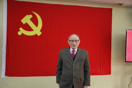 刘新垣院士与党旗合影