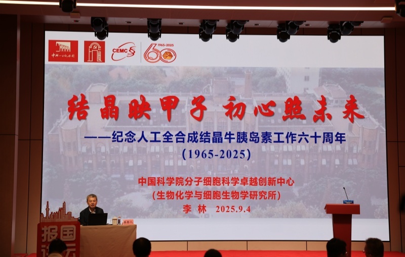 中国科学院院士,原中国科学院上海生命科学研究院院长、生物化学与细胞生物学研究所所长李林作《结晶映甲子 初心照未来——纪念人工全合成结晶牛胰岛素工作六十周年》专题报告,回顾了老一辈科学家在极其简陋的条件下完成人工全合成结晶牛胰岛素工作、取得这一历史性成就的历程,并系统梳理了当前生命科学发展的趋势。