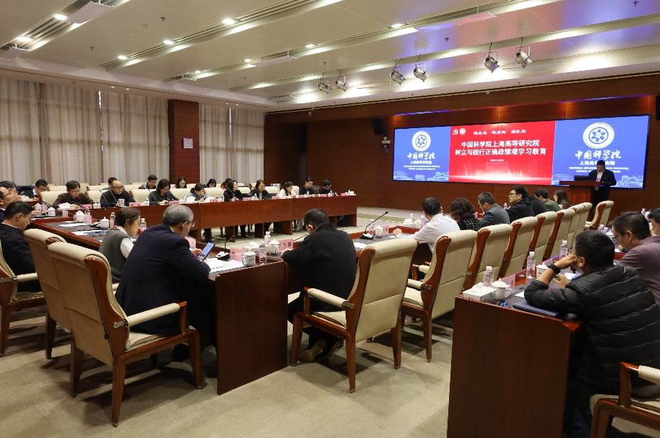 为深入开展树立和践行正确政绩观学习教育,引导广大党员干部从思想深处正本清源、锤炼过硬作风,2026年3月25日下午,中国科学院上海高等研究院(下面简称“上海高研院”)举办第一期树立和践行正确政绩观学习教育读书班。上海高研院领导班子成员、院务委员、党委委员、中层干部及各党(总)支部书记参加读书班。