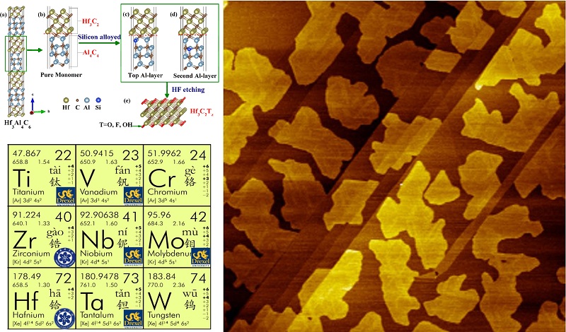 目前元素周期表过渡族金属区域业已合成出对应的MXene材料,其中Zr系和Hf系由中国科学院合成。