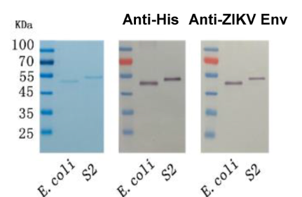 重组亚蛋白疫苗是一个相对简明的疫苗研发策略。它非常安全,免疫原易于表达且价格相对较低。与其他黄病毒相似,寨卡病毒RNA基因组编码翻译出一个多聚蛋白。此多聚蛋白进一步加工成三个结构蛋白(C, prM, E)和七个非结构蛋白。寨卡病毒最外一层为180个E蛋白构成, 他们以反向二聚体的形式通过锚定区锚定在病毒的脂膜上。E蛋白的外功能区是其N端大约80%的区域,被称之为E80。E80包含三个不同的功能结构域(EDI, EDII, EDIII)介导病毒接触和进入宿主细胞。所以E80蛋白很显然是一个很理想的抗原选择。
