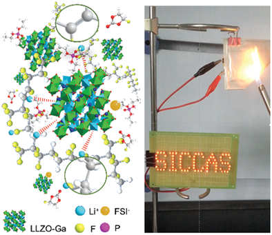 最近,中国科学院上海硅酸盐研究所温兆银研究员团队通过离子导电型引发剂实现了凝胶聚合物电解质的原位制备,该凝胶聚合物电解质具有优异的耐火性能,基于该电解质组装的固态锂电池在同时承受剪切与火烧条件(火焰温度528℃)下仍能为发光二极管阵列供电,使锂电池的安全性大大提高。相关工作申请了中国发明专利,主要研究结果以“In Situ Generated Fireproof Gel Polymer Electrolyte with Li6.4Ga0.2La3Zr2O12 As Initiator and Ion-Conductive Filler”为题发表在国际顶级期刊Advanced Energy Materials(IF=21.875)上,论文第一作者为上海硅酸盐所在读博士研究生徐东,导师为温兆银研究员。