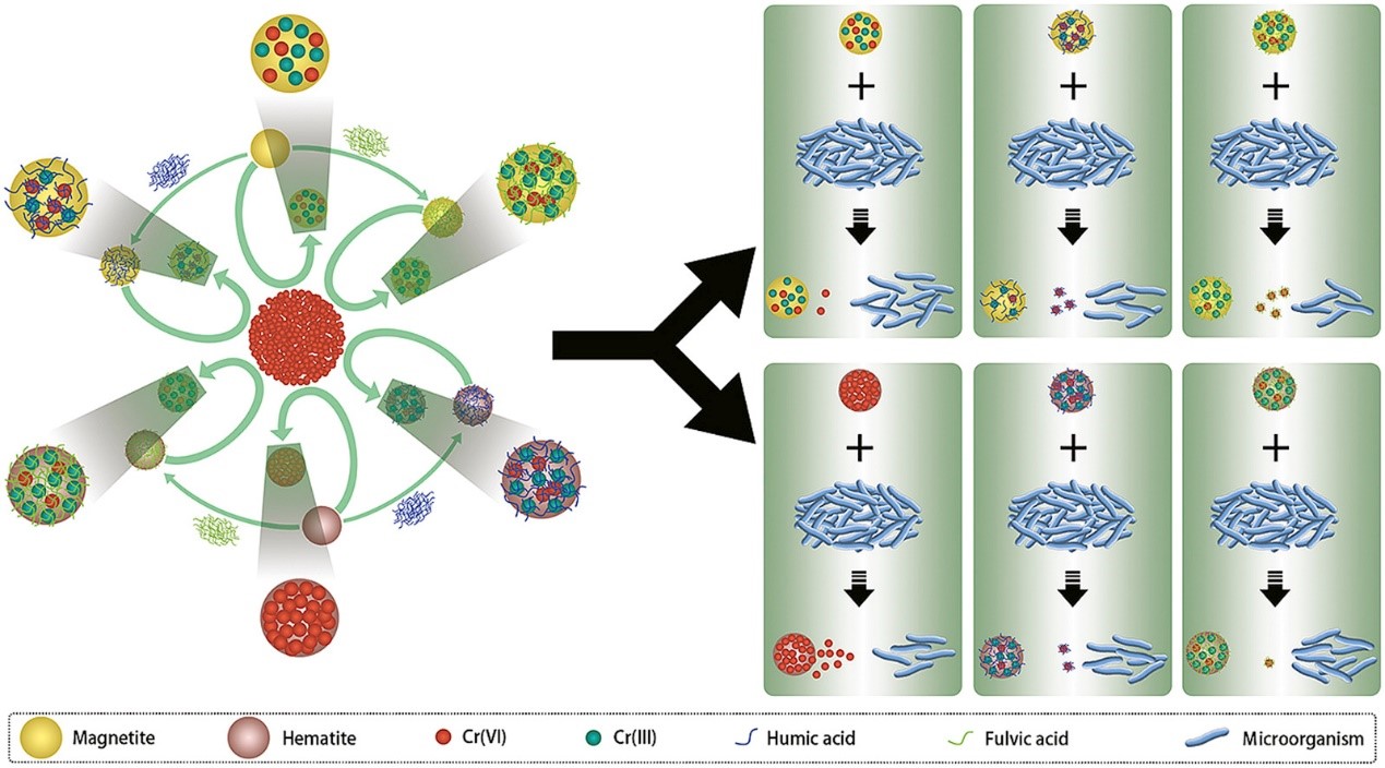 中国科学院城市环境研究所赵峰研究组研究了两种铁矿(磁铁矿和赤铁矿)对六价铬的吸附过程中两种腐殖质(腐殖酸和富里酸)的影响以及相应生物效应。通过吸附动力学,吸附等温线和吸附热力学研究,结果表明,所有实验组对六价铬的吸附都是自发的,且都在吸附剂表面进行,化学吸附和物理吸附同时存在,但主要以化学吸附为主;除赤铁矿腐植酸复合体对六价铬的吸附过程外,其余实验组对六价铬的吸附均属于放热反应。不同的腐殖质对于不同的铁氧化物吸附铬能力影响不尽相同,例如,富里酸能增加磁铁矿对六价铬的吸附量,而腐殖酸却显著减小了赤铁矿对于六价铬的吸附。腐殖质对于铁氧化物吸附六价铬的影响也导致不同的微生物群落变化。例如,由于腐殖质减少了赤铁矿的对六价铬的吸附,微生物多样性的变化明显变小,而腐殖质的存在与否对磁铁矿样品中微生物群落影响甚微。该研究阐释了环境中六价铬在铁氧化物-腐殖质复合体界面行为的复杂性,同时也拓展了铬在环境中迁移与转化的理解。