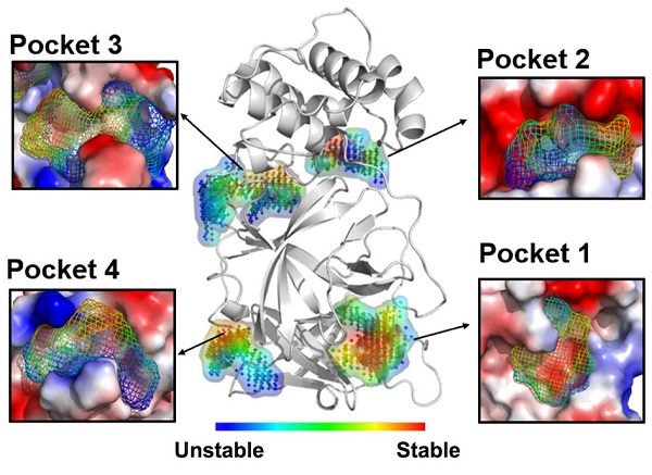 图3. SARS-CoV-2 主蛋白酶上口袋的稳定性