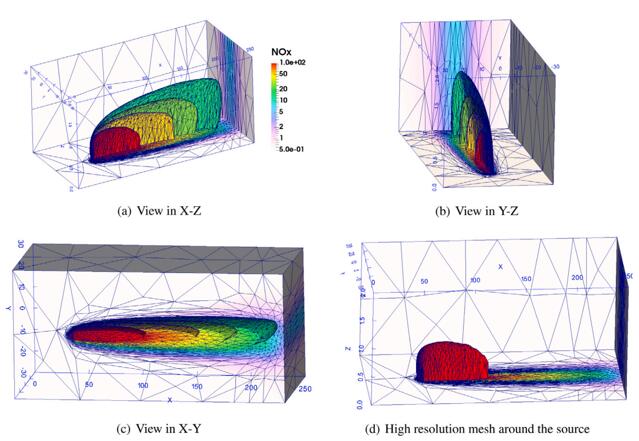 近日,中国科学院城环境研究所肖航团队在Atmospheric Environment期刊发表了题为A new anisotropic adaptive mesh photochemical model for ozone formation in power plant plumes的最新研究成果,郑捷助理研究员为第一作者,帝国理工学院的Fang Fangxin教授为通讯作者。该研究是与英国帝国理工学院应用模式和计算中心团队共同合作完成,在自适应网格大气污染输送模型基础上,通过耦合大气光化学模块CBM-Z,建立一个新型各向异性自适应网格大气光化学模型,可实现真正意义上的多物种多尺度自适应网格大气复合污染追踪模拟。
