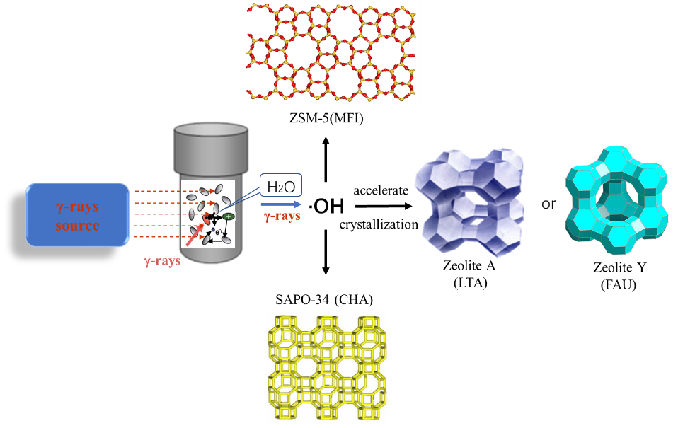 图2. 伽马射线辐照合成路线快速可控制备不同结构分子筛示意图