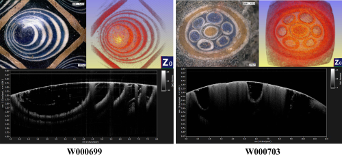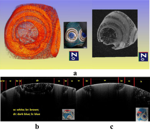 图4 徐家岭楚墓出土钠钙蜻蜓眼玻璃珠OCT图像