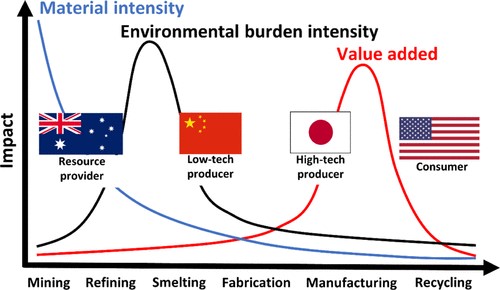 该研究以1991-2016年中国、美国、日本、澳大利亚的铝国际贸易为研究对象,采用自下而上的方法,揭示和解释了各国铝贸易的经济、资源、能耗和碳排放四个维度的不平衡现象。研究发现四个国家均面临贸易不平衡。美国存在贸易赤字,但从贸易中获得了资源、能源和环境利益。中国以能源和环境为代价,获得了资源和经济利益。日本在四个维度均存在顺差,而澳大利亚则在四个维度均存在逆差。导致上述现象的原因主要有:(1)不同含铝产品的价格、资源强度、隐含能耗强度和碳排放强度存在巨大差异,铝土矿的资源强度最高,未锻轧铝、半成品和成品的能耗和碳强度最高,而成品的价格最高;(2)各国的贸易结构不同,美国进口除废铝外的全部含铝产品,因此获得了资源、能源和环境收益并遭受贸易赤字;中国和日本均进口原材料,出口半成品和成品,因此均从贸易中获得资源和经济利益;但中国主要进口铝土矿和氧化铝,将能源和排放强度最高的冶炼和电解环节留在国内,付出了能源和环境代价;而日本主要进口未锻轧铝,将冶炼和电解环节转移到了国外,获得了能源和环境收益;澳大利亚进口价格高的半成品和成品,出口资源强度和环境影响大的铝土矿和氧化铝,从全生命周期来看存在多维度的贸易赤字。