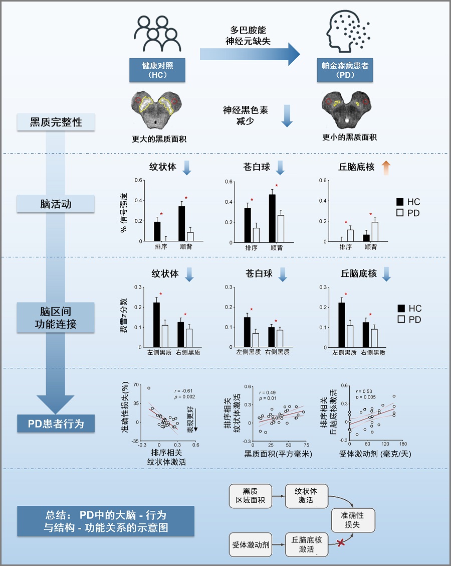 该研究利用多模态磁共振成像技术,结合计算机化的认知任务,首次发现在PD早期中脑黑质致密部的结构损伤可能通过调节基底神经节的功能紊乱,影响患者加工序列信息的能力。