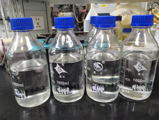润滑材料实验室李久盛研究员带领团队与山西潞安化工集团合作,自2014年开始联合开展了煤制α-烯烃制备mPAO 的研发工作,取得了一系列关键制备技术的突破,申请了10多项发明专利,填补了国内低粘度PAO基础油的技术与产品空白。在上述研究工作的基础上,双方合作于2020年11月实现了中试生产装置开车,历时数月完成了烯烃原料预处理段、烯烃聚合段、聚合后精馏段和聚烯烃加氢段的稳定运行和工艺参数优化。试验结果表明,自主研发的茂金属催化剂具有超高的催化活性(不小于60Kg/g)和优异的选择性,烯烃原料转化率大于98%。中试生产的mPAO 4、6、8、10四个产品与进口产品相比,除了具有优异的低温性能和出色的热稳定性外,还具有更高的粘度指数。
