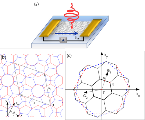 图1 (a) 圆偏光激发转角双层石墨烯产生光电流的示意图。 (b) 扭转角