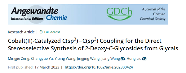Cobalt(II)-Catalyzed C(sp3)-C(sp3) Coupling for the Direct Stereoselective Synthesis of 2-Deoxy-C-Glycosides from Glycals. Mingjie Zeng,Changyue Yu, Yibing Wang, Jingjing Wang, Jiang Wang,* and Hong Liu*. Angew. Chem. Int. Ed., 2023, e202300424.