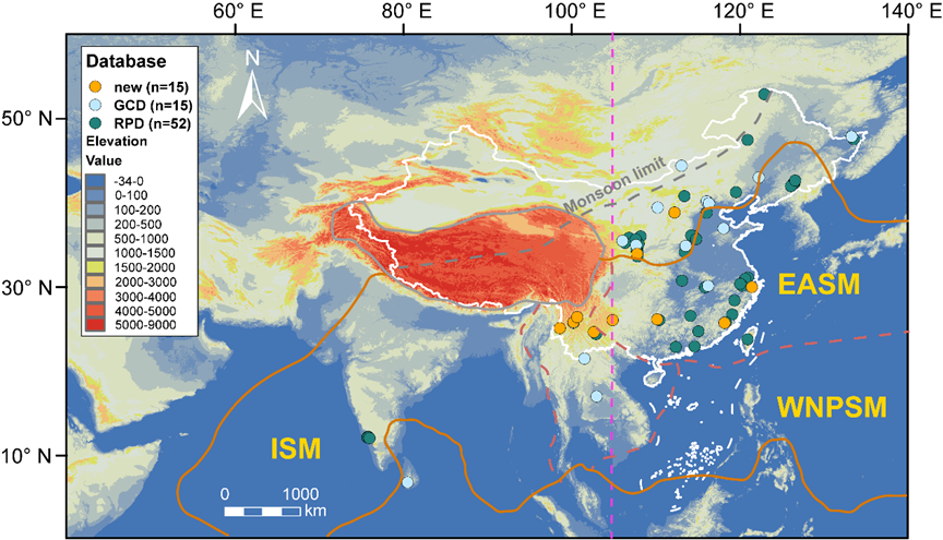针对上述问题,中国科学院南京地理与湖泊研究所肖霞云研究团队集成亚洲季风区(包括东亚季风区和印度季风区)82个炭屑记录,重建了该区域过去两万年的古火活动演化历史,并结合时间序列分析、气候模拟、归因分析等多种数理统计方法,系统探究了古火活动与气候变化、植被动态及人类活动之间的相互作用关系。