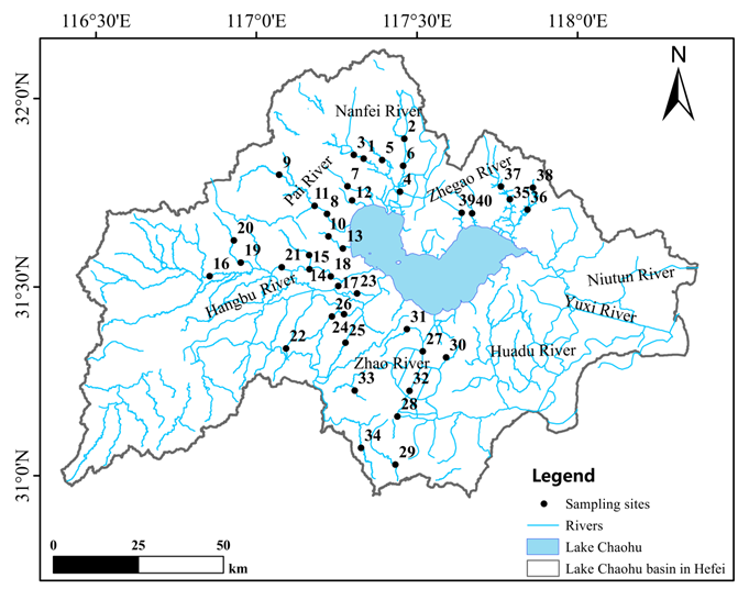 图1. 巢湖流域合肥境内河流调查断面分布图